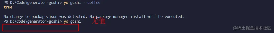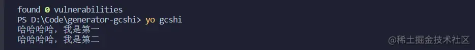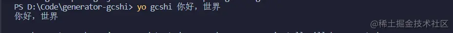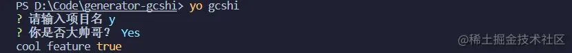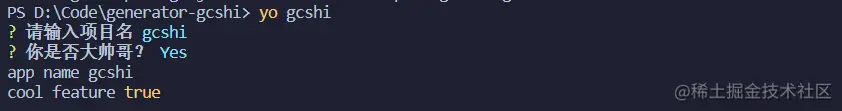 此时,项目被全局安装,可以使用 yo gcshi 命令运行项目