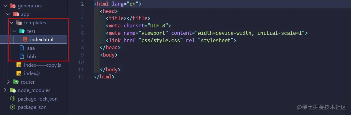 我们将使用 fs.copyTpl 方法复制文件,同时copyTpl 的第三个参数用来替换index.html文件内的占位符。