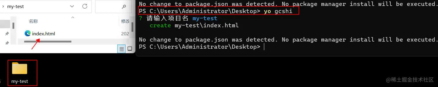 首先,创建一个文件夹,在其中编写生成器。此文件夹必须命名为 generator-XXX (其中 XXX 是生成器的名称,本示例中可以写为 generator-gcshi)。