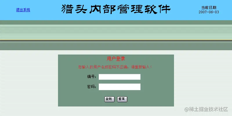 在图3中如用户和密码的格式都正确,但数据库里没有此帐户,或者帐户存在,密码错误,就会显示错误消息,如图10: