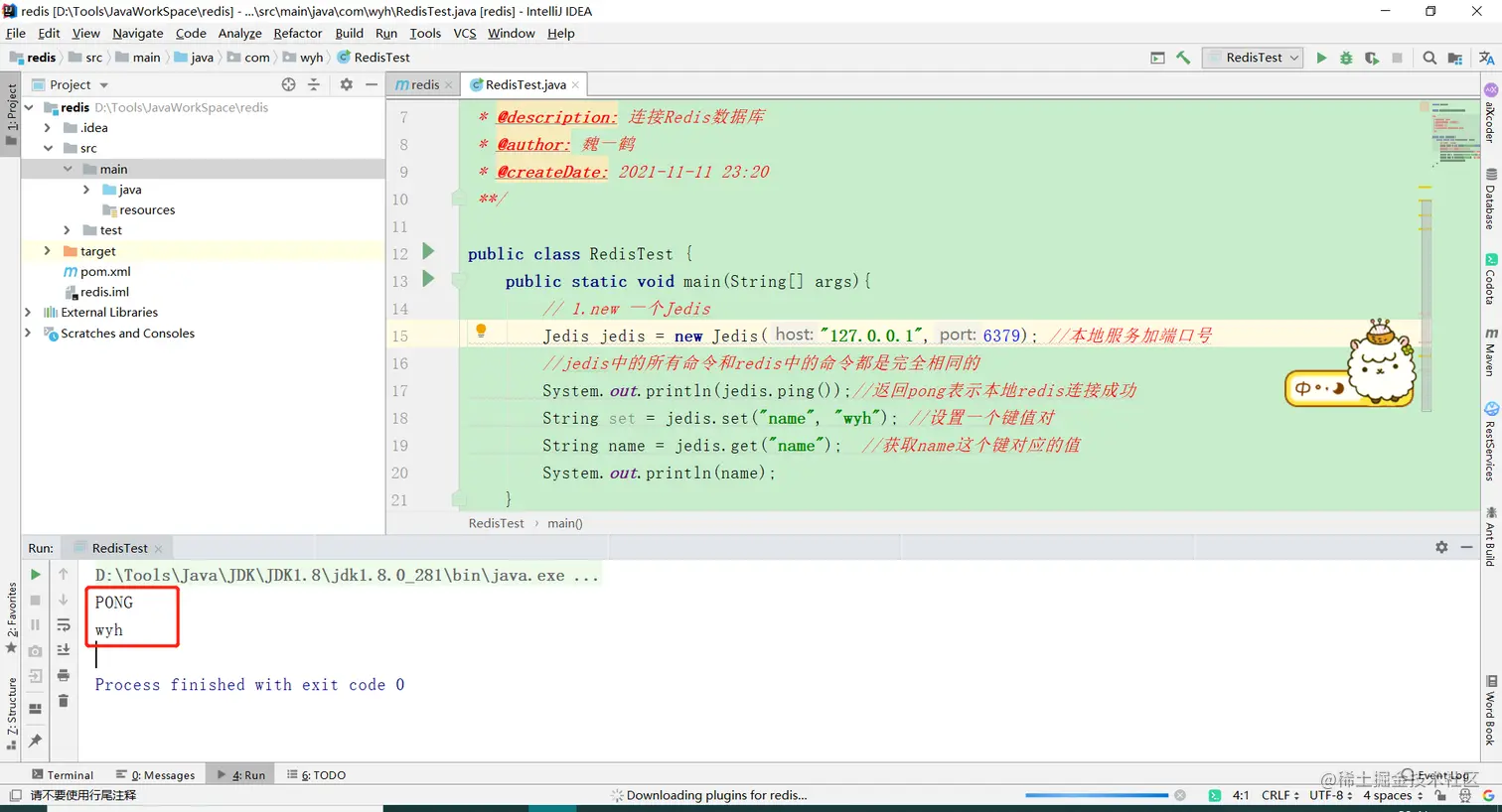 System.out.println(jedis.ping()); //返回pong表示本地redis连接成功