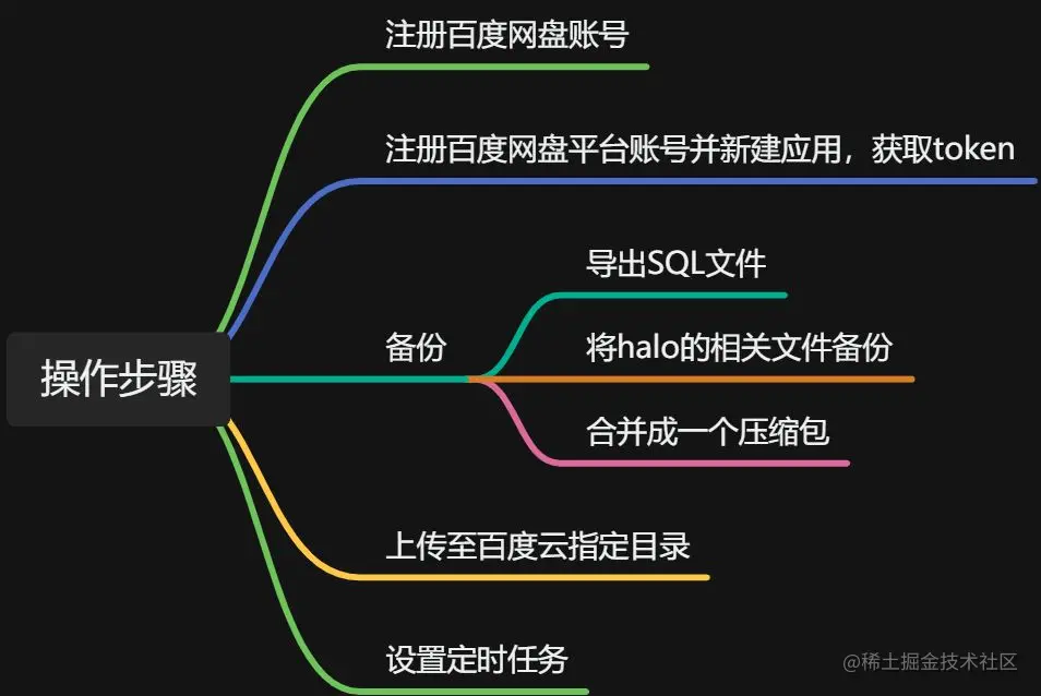 最近买了华为云的云服务器,也搞了一个域名,使用halo开源建站工具搭建自己的个人博客。虽然访问量不大,但是毕竟是自己的博客,数据安全性还是需要好好考虑的,需要考虑数据备份。虽然可以直接脚本打包好相关的文件,然后下载到本地,再上传到百度网盘。不过感觉这种方式不够智能,也比较麻烦。刚好也开通了百度网盘超级网盘,所以就构思打包好之后就直接上传到百度网盘。这样就基本不用自己做什么,只需要定时上去看看上传是否ok就行了。