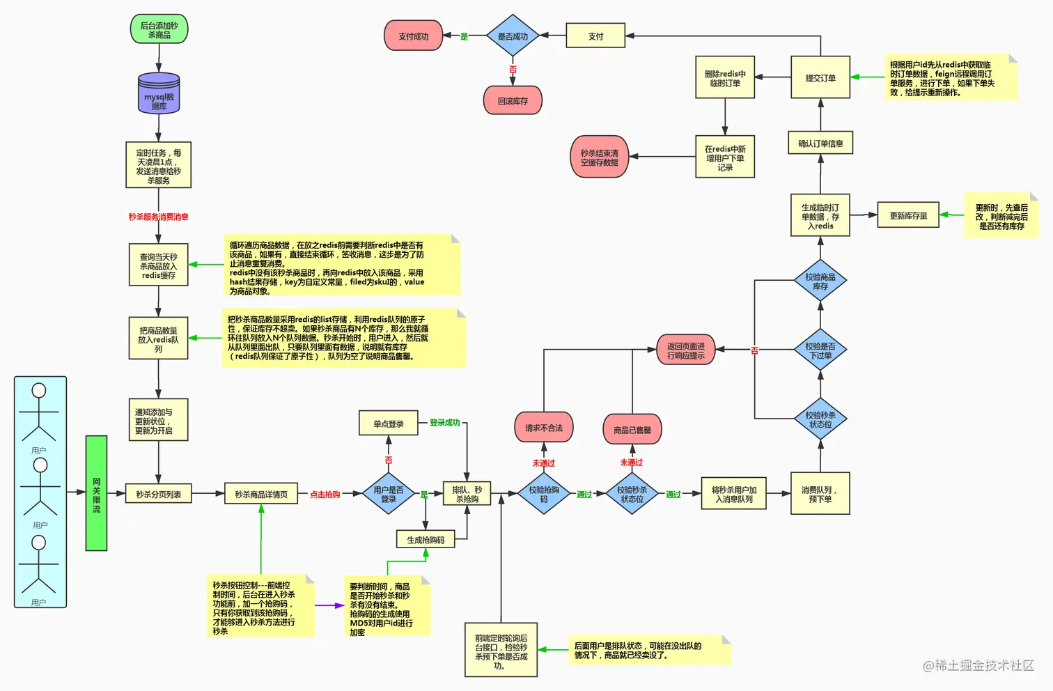 既然是引入其它中间件来辅佐秒杀,那么流程这块的技术栈需要我们重新梳理一下。