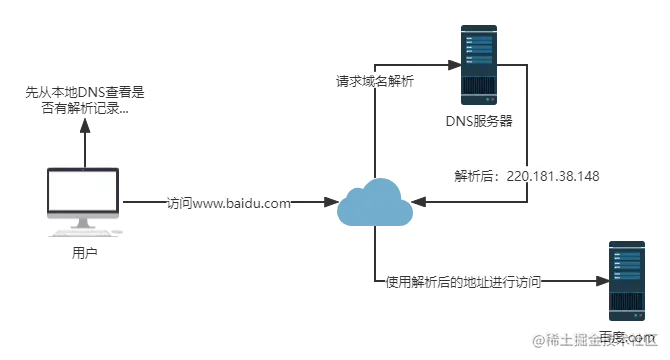 而对于DNS(Domain Name System)域名解析服务来说,它负责了域名到IP地址之间的解析服务,因为记忆一串纯数字的IP地址来说,对于我们用户实在是太不友好了,所以DNS解析服务应运而生,通常一个访问可能会经过本地DNS及公共DNS服务器。