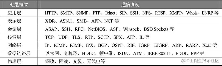 | 应用层 | 向用户提供应用服务时通信的活动 |