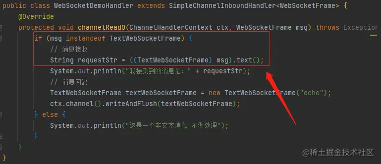 protected void channelRead0(ChannelHandlerContext ctx, WebSocketFrame msg) throws Exception {