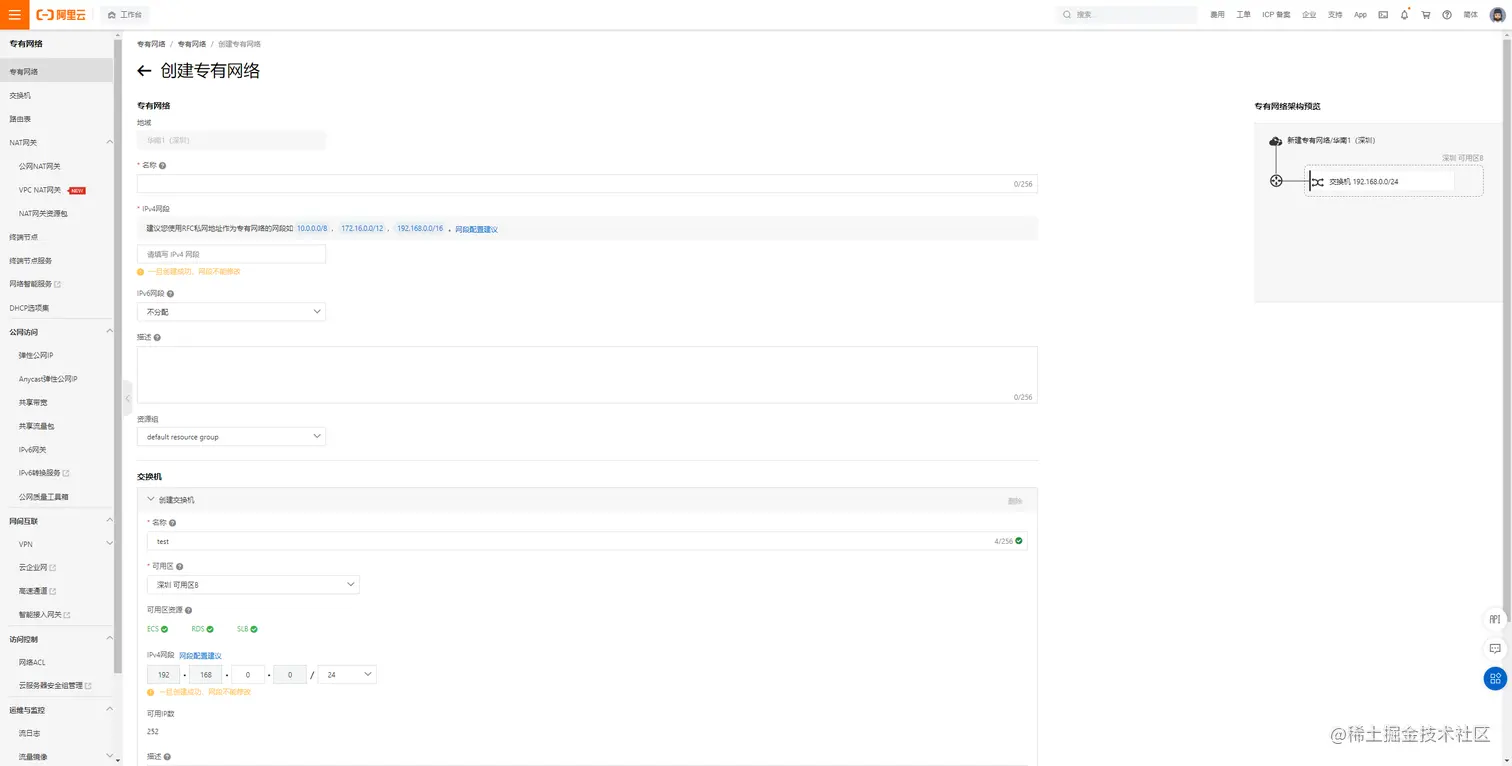 上面是通过阿里云去创建一个专有网络,也是网络虚拟化技术的一种体现。