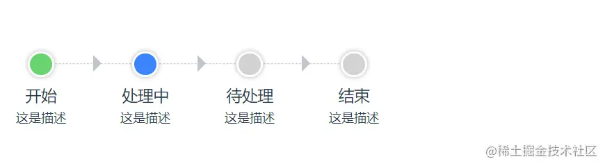 而这个显示方式之前使用的是 Steps 步骤条 的方式展示的,类似于: