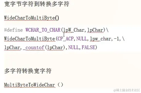 微软将这两套字符集及其操作进行了统一,通过条件编译控制实际使用的字符集,这样就有了_T("")这样的字符串。