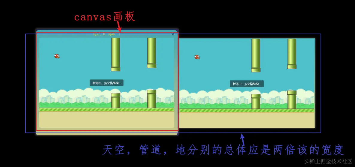 绘画完管道后,当管道移动到 canvas 画板左侧完全不可见后,将其位置重新放到画板最右边不可以区域,这样就是一个轮回了。