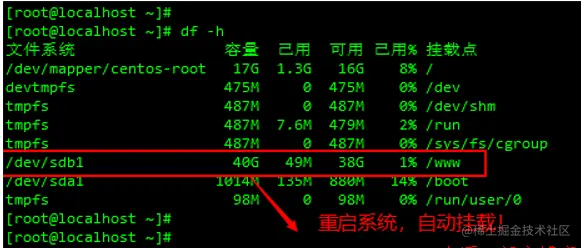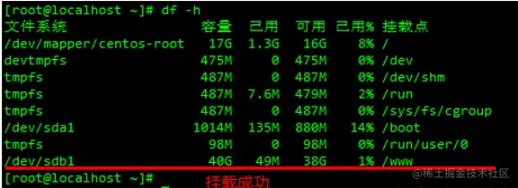 1.先使用df -h命令查看/www目录是否建立挂载成功。
