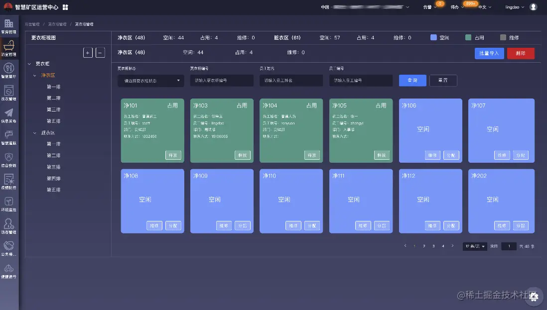 矿区工人的生活也存在诸多不便。我们都知道,矿区员工工作一天,基本就是一个“黑人”,所以矿区的洗衣和洗浴需求量就非常大,如果仅依靠人工纸质档案管理,取衣集中,管理非常混乱。不仅如此,在用餐方面,缺少系统化管理。在早中晚,员工集中用餐场景下,会出现排队人流量大,个别员工饿肚子继续工作以及餐食准备过量造成浪费的情况。