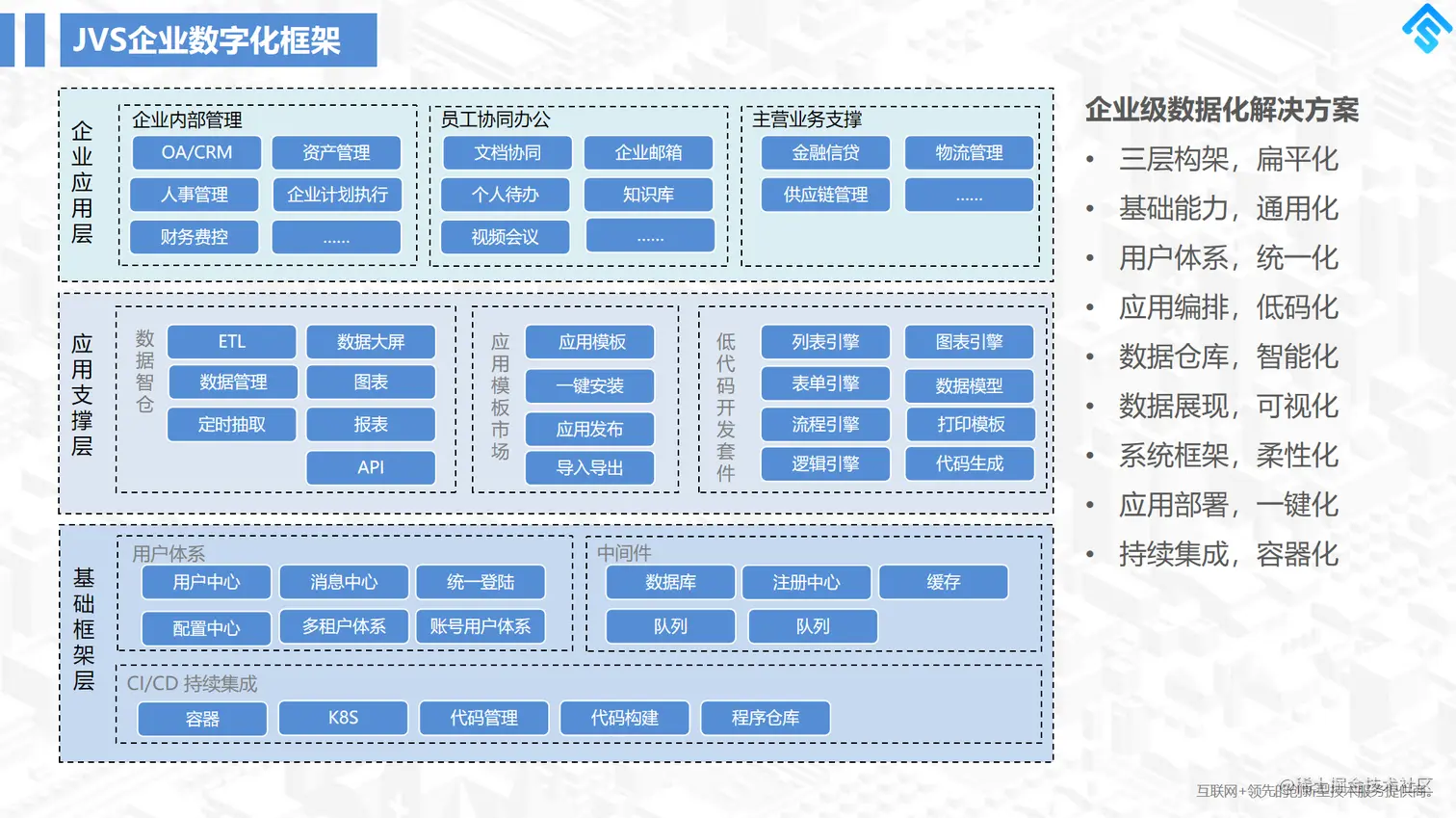 企业数字化转型,可以整体思考提升实践能力。可以采用JVS低代码开发平台配置(业务中台),JVS数据智(业务中台)。