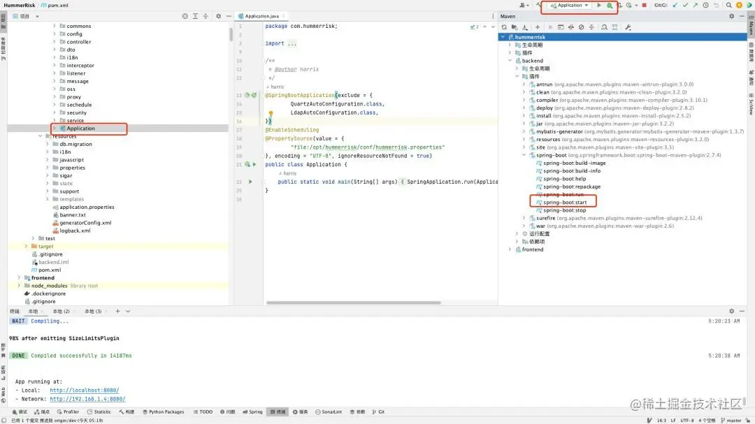 - 可以使用 io.hummerrisk.Application 入口方法直接启动