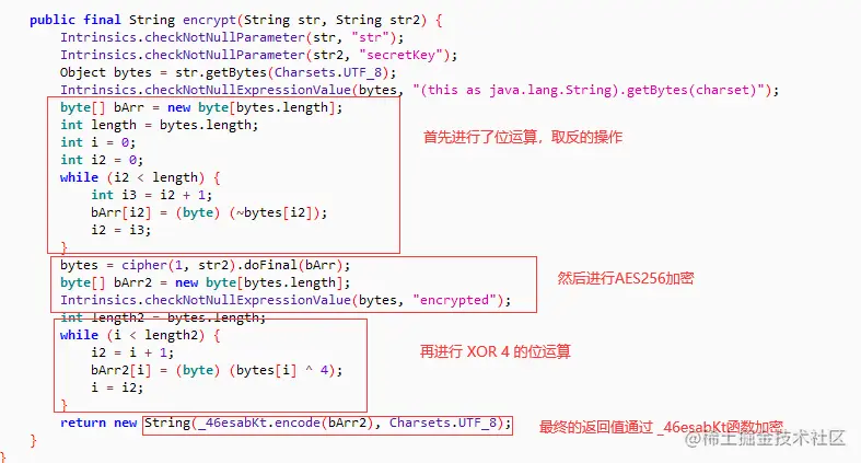 可以看到有两个参数,str1为input,str2为key,接着调用了AES256,继续分析