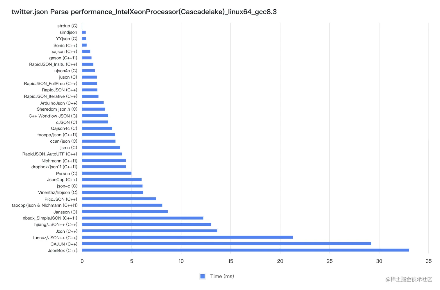 不同 JSON 库性能对比