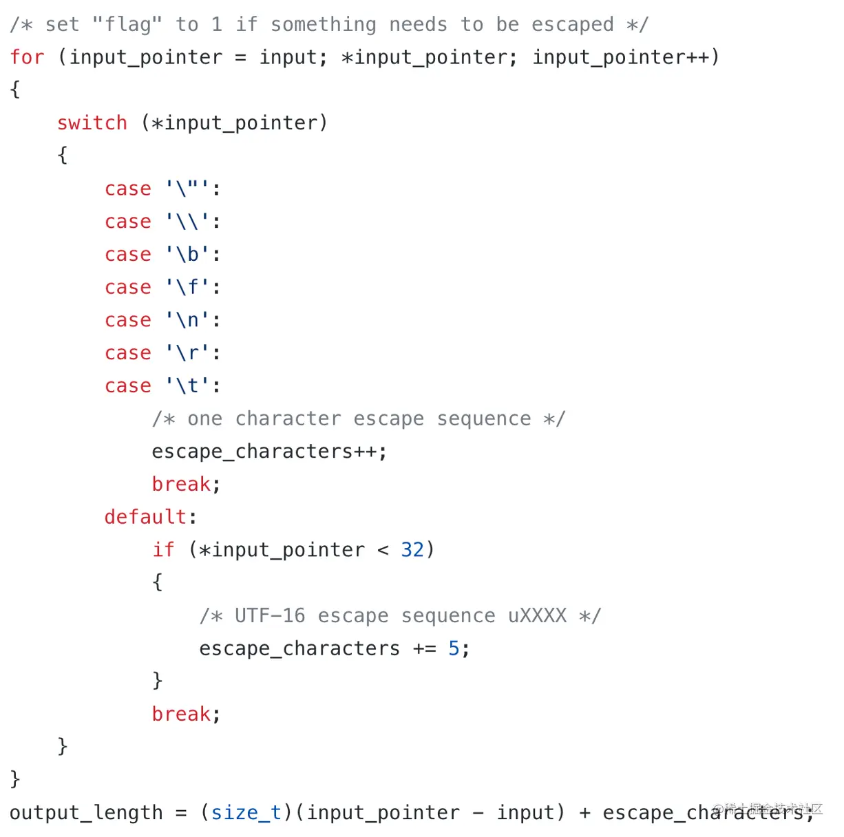 从 DOM 内存表示序列化到文件的过程中,一个非常重要的过程是做字符串的转义,比如在引号前面添加转义符`` 。比如,把This is "a" string 序列化成 "This is "a" string" ,存放在文件。常见的实现是逐个字符扫描,添加转义,比如 cJson 的实现