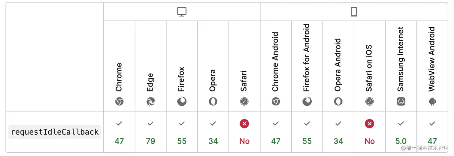 requestIdleCallback这个api虽然是一个实验中的功能,但是目前已经能够在各大主流浏览器中使用