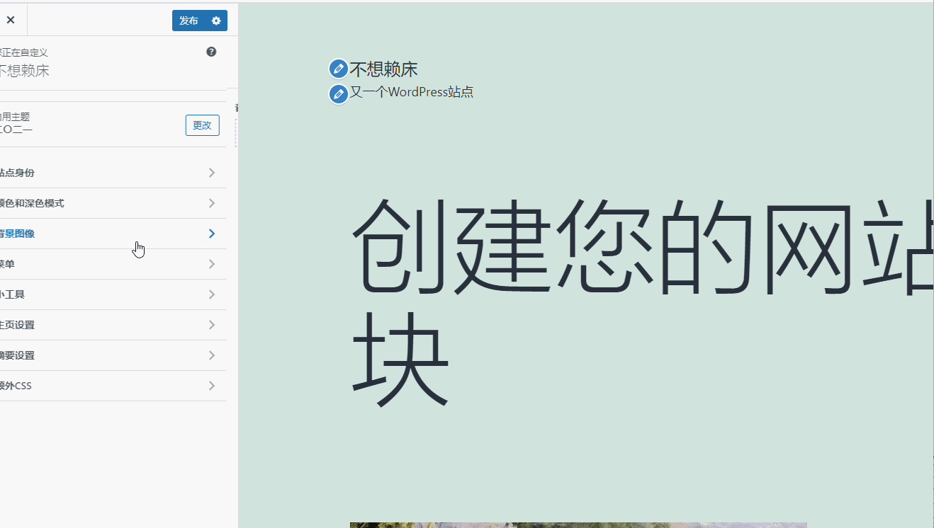 进入wordpress仪表盘,点击自定义站点 在这里可以配置站点的一些基本信息