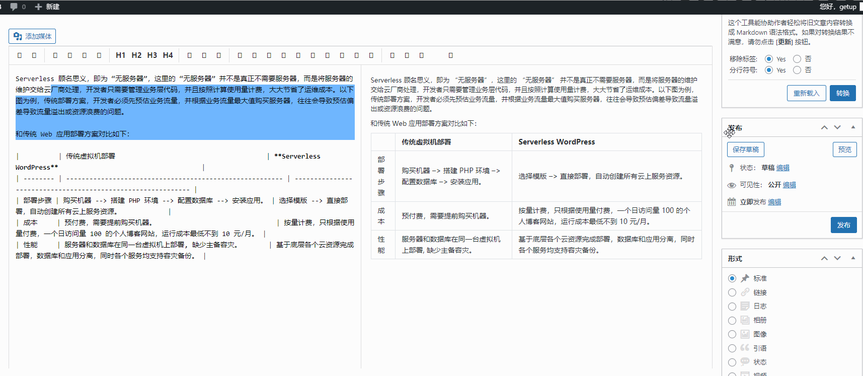 举个例子,Wordpress编辑文章自带的编辑器不支持markdown格式,我们可以在下载一个markdown插件