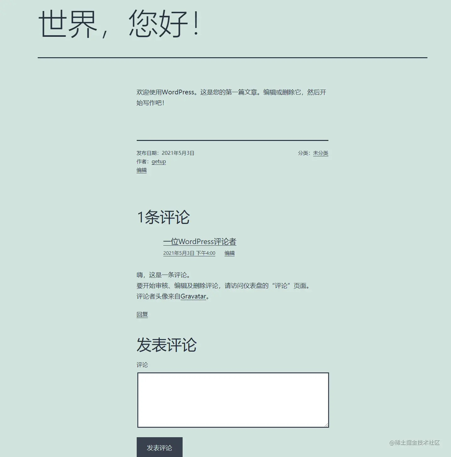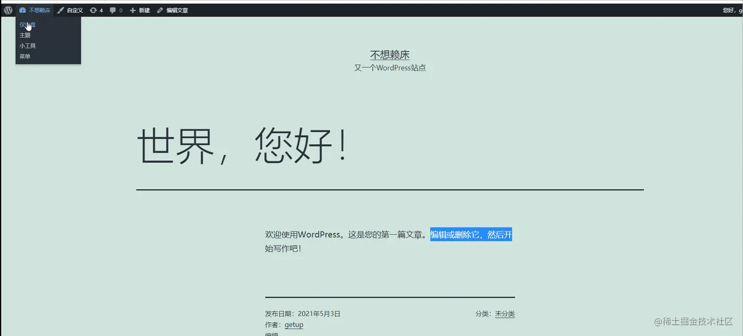 但是界面相对简单,只具有基本功能,还不是很完善,下面我们去仪表盘对博客前台进行一下调整