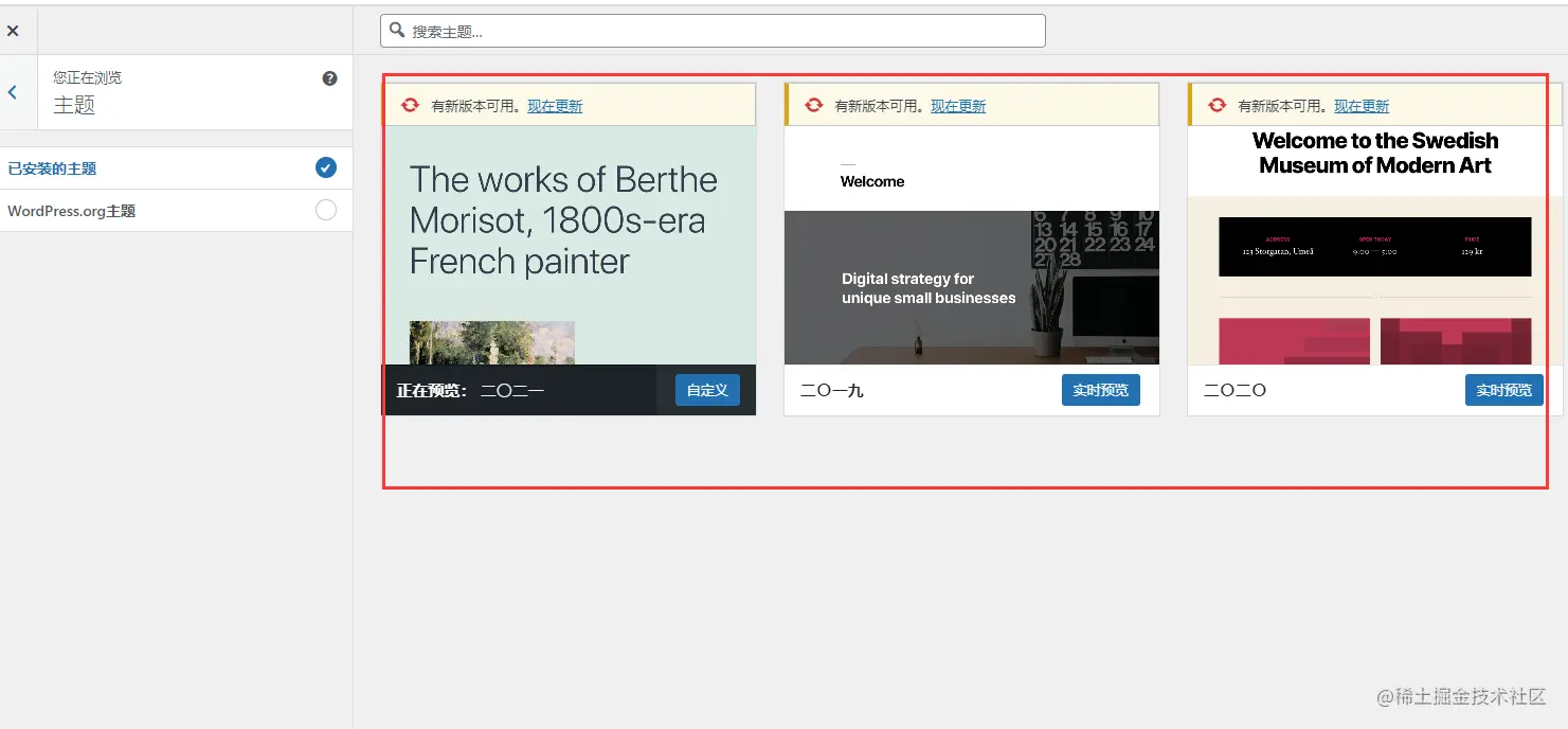 目前Wordpress自带三个默认主题,但我们也可以下载安装其他wordpress主题,目前适配wordpress的主题还是很多的,大家可以安装自己喜欢的主题