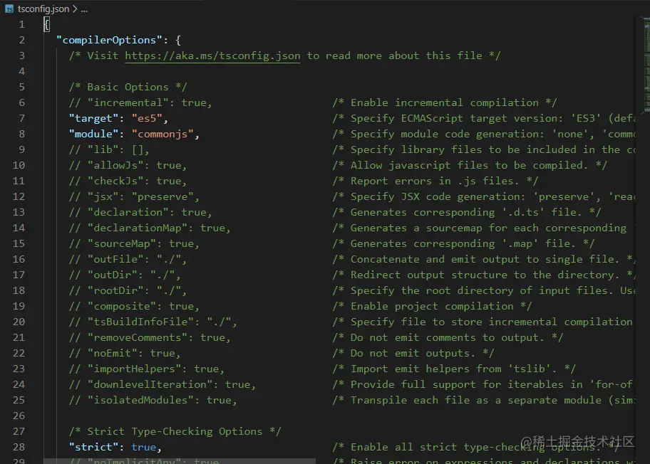 - tsconfig.json文件内容(对于其中每一项的含义,后面补充)
