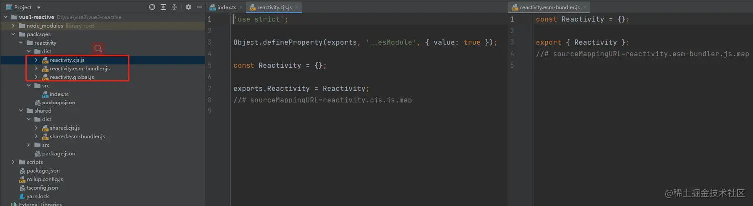 - 修改reactivity和shared包中package.js中的配置