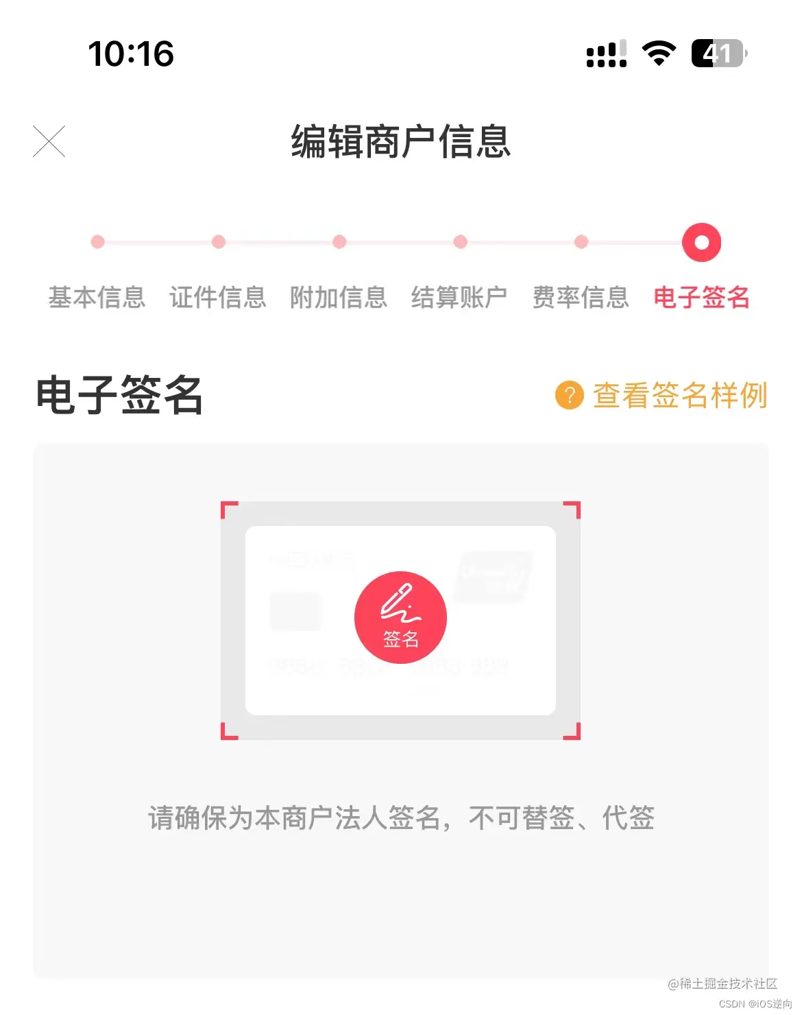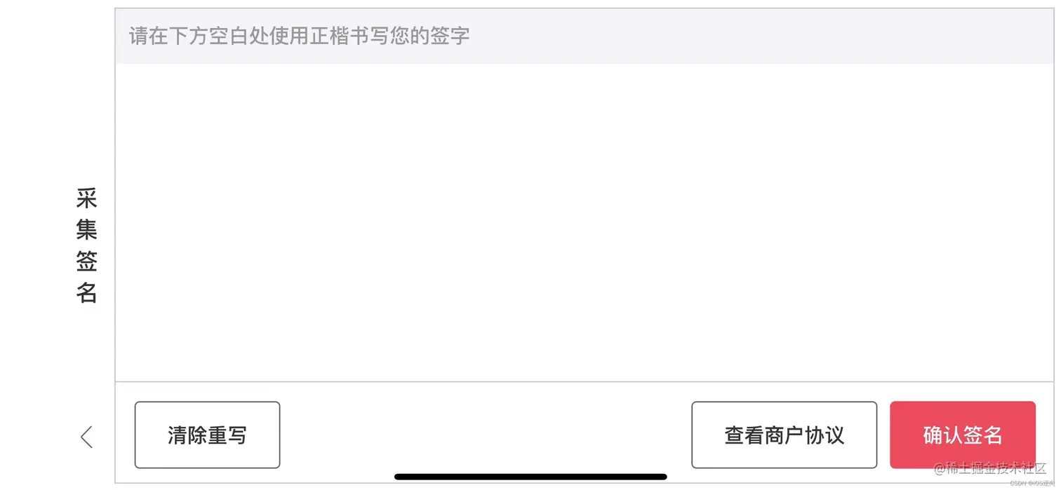 - 功能:采集电子签名,支持签名界面为横屏其余页面都是竖屏、清除重写、灵活控制提示语信息、以及查看商户协议