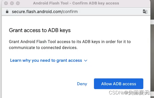 3:新打开的网页,有一个弹出框(这里需要注意是否被浏览器拦截掉),点击同意ADB调试。(注意,这里也需要翻墙的,电脑要翻墙)