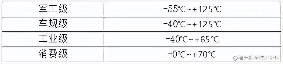 通常分为军工级、车规级、工业级、消费级;