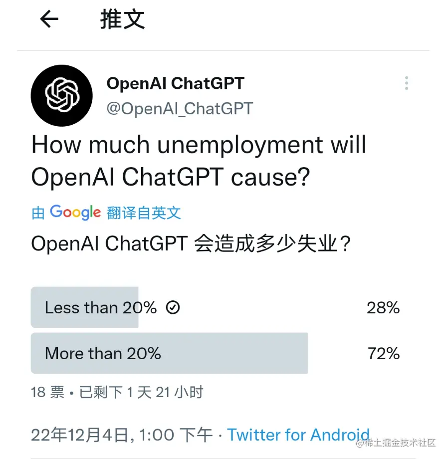 估计还是有很多同学使用Google搜索好的文章,但是ChatGPT绝对会对StackOverflow有一定的影响,ChatGPT可是给你代码的,而且正确率也是非常高的,所以可能一些初学开发者会转向ChatGPT去搜索代码片段,而不是StackOverflow。