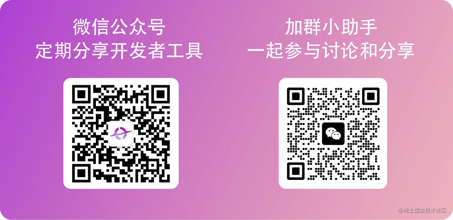 欢迎大家关注我们公众号定期推荐有趣的开发者工具,也欢迎大家加入我们微信群一起讨论和交流: