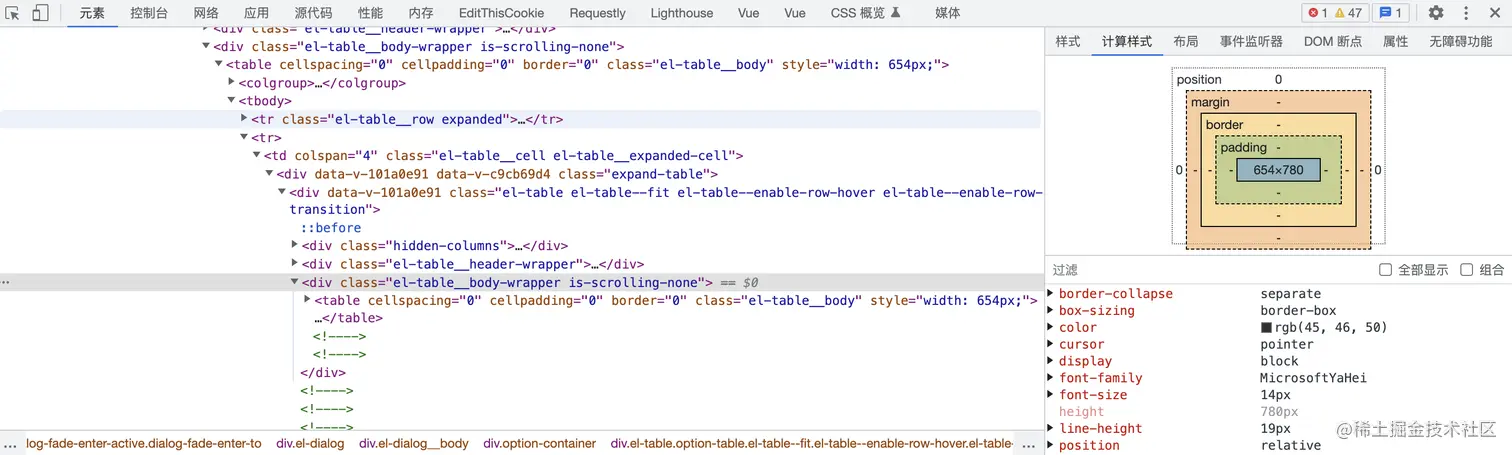 const bodyWidth = this.table.$el.clientWidth;