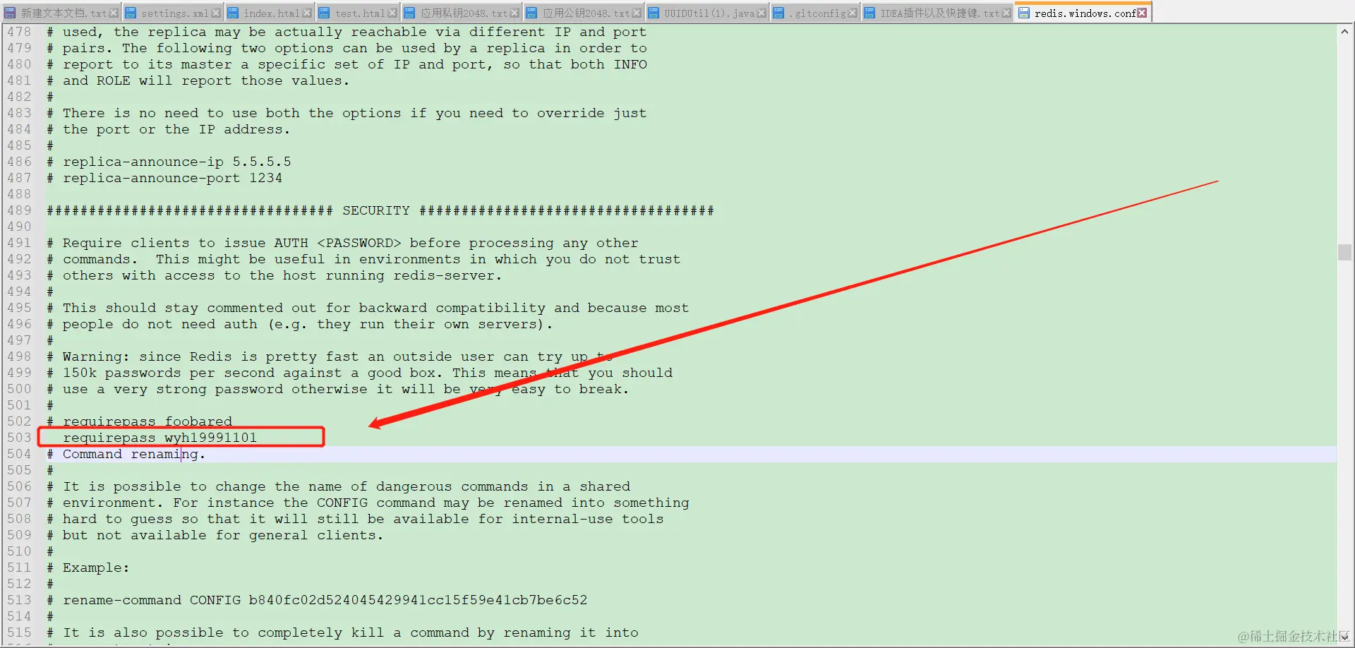 设置密码方式1:在conf文件插入密码(不推荐)