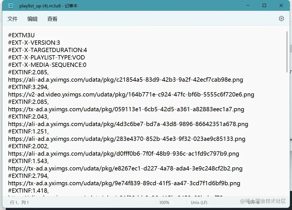 发现问题:仔细查看了下载的m3u8文件(如下图所示),发现里面是png后缀的ts文件,不是以.ts结尾的!所以会导致以上两个方式无法下载视频。