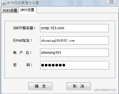 smtpPop3.address=收发邮件帐户(如xyz@sina.com)