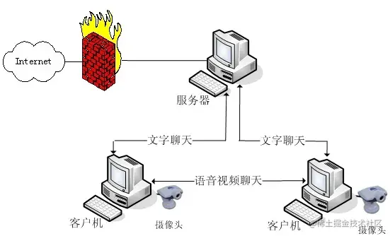 本文介绍了采用JAVA编程开发视频聊天系统的一套比较常用的解决方案。文字聊天采用TCP模式;语音视频聊天采用UDP模式,在客户端之间点对点的进行。在该方案中,通过函数库VFW来实现视频捕获、影像压缩以及影像播放。微软公司提供的专门用于视频捕获开发的工具包VFW,为在Windows操作系统中实现视频捕获提供了标准的接口,从而大大降低了程序的开发难度。在视频传输方面,则通过组建视频帧,将位图形式的视频帧压缩成帧格式的Mpeg4流,传输到客户端后,解压并显示影像。同时,在本方案中,采用了线程来实现语音录制和语音回放,最终实现了通过服务器中转的文字聊天、点对点的语音视频聊天。