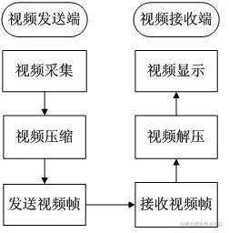 视频采集采用AVICap从视频采集卡捕获视频图像,得到的是位图形式的视频帧,然后用Divx编码器进行压缩,压缩以后形成以帧为格式的Mpeg4流。通过Winsock实现压缩后的视频数据在局域网中的实时传输,接收完的数据交给Divx解码器,以帧的格式解压,最后实现视频显示。所以提出以帧为单位发送视频数据流。为了在接收端能够方便地提取出一帧,提出如表1所示的格式组建帧。完整的一帧由5个字段组成,各个字段的意义如下:帧开始标志:标志着一帧地开始,占用4个字节的空间;帧大小:表示整个帧的大小,包括5个字段的大小,占用4个字节的空间;帧编号:表示帧的顺序编号,占用4个字节的空间;帧类型:标志此帧是否是关键帧,占用1个字节的空间;帧数据:存放压缩后一帧的完整数据。