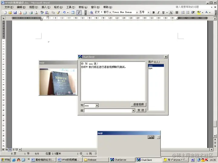 关键词: 文字聊天;VFW;视频捕获;视频传输;语音录制;语音回放