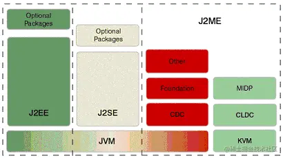 在消费电子和嵌入式设备领域,内存从几百K到几十M,从没有屏幕到Web-TV,CPU从低功耗的嵌入式处理器到206MHz的RISC处理器,硬件条件的差异是相当大的。这就使得J2ME的标准需要有不同的层次和类别来适应这个复杂的领域,因此相比之下J2ME就比J2SE和J2EE的标准要复杂得多。因此,清楚的理解J2ME的体系结构的划分才能更好的理解和掌握J2ME。