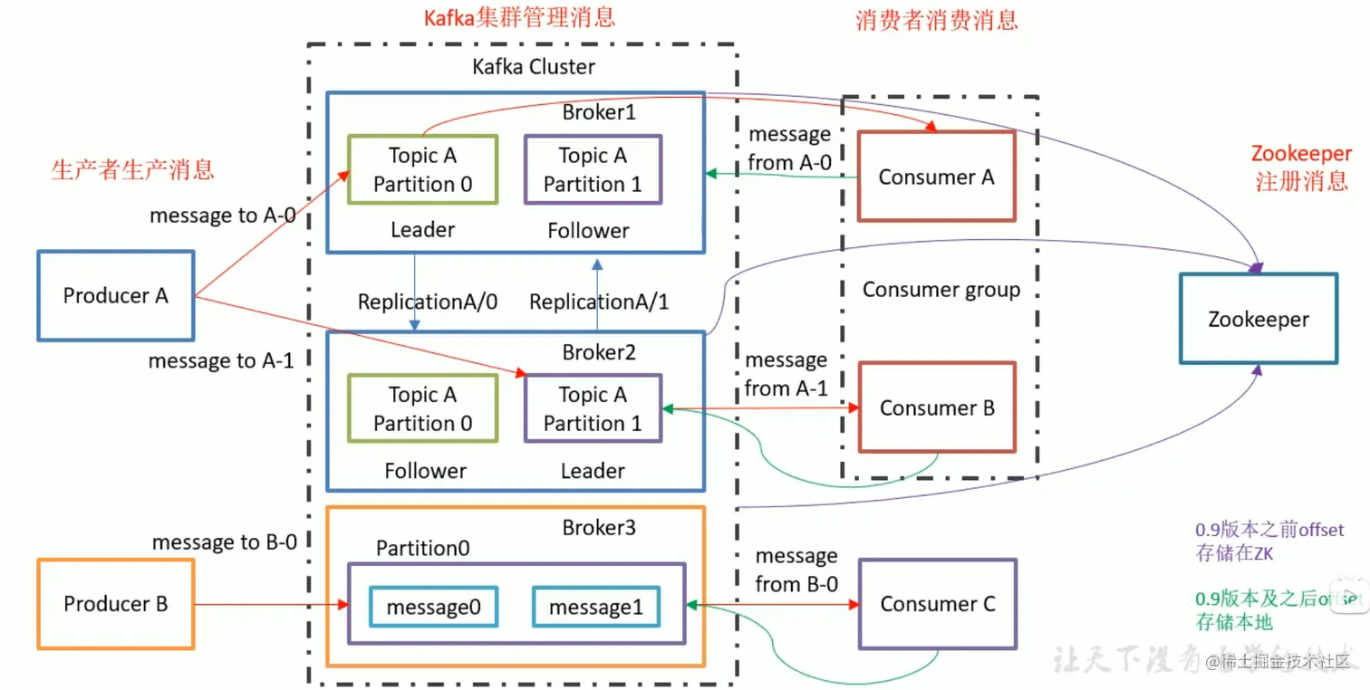 - Broker : 一台 Kafka 服务器就是一个 borker。一个集群由多个 broker 组成。一个 broker 可以容纳多个 topic。