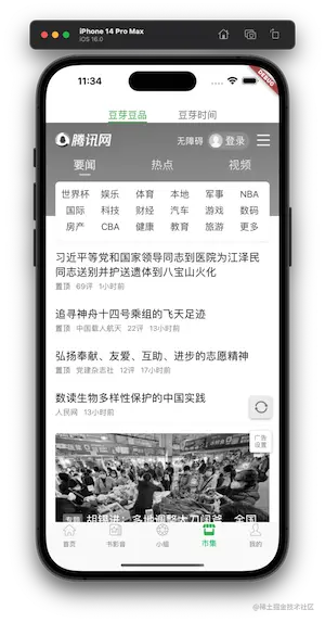 // 底部便是一个 TabBar 内部是一组 Tab