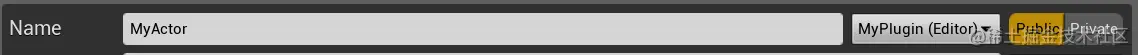 新建一个 C++ 类,继承 AActor,就叫 MyActor,注意 这个地方选择的是我们的插件,而不是我们的工程