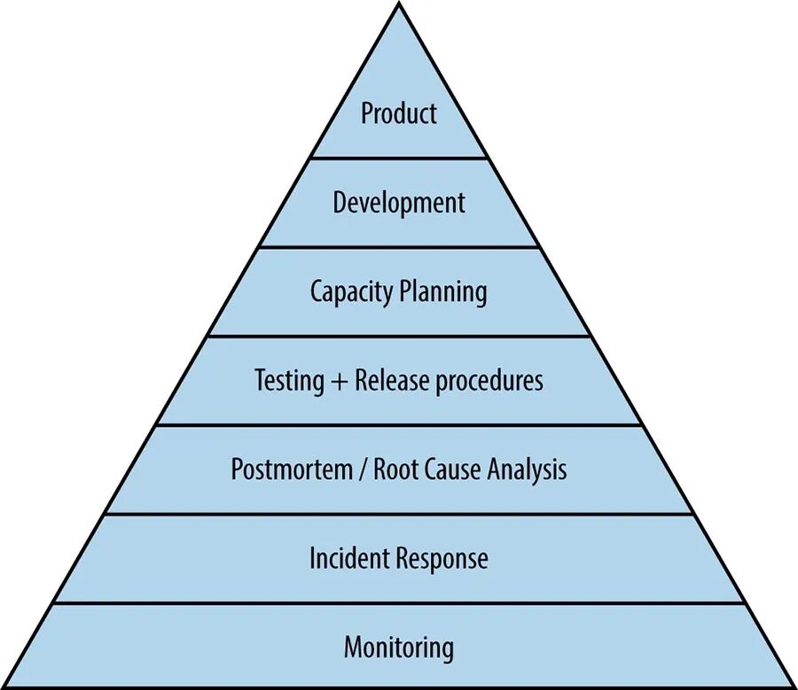 Google SRE中(SRE三部曲)有一个层级模型来描述系统可靠性基础和高层次需求(Dickerson's Hierarchy of Service Reliability),如下图: