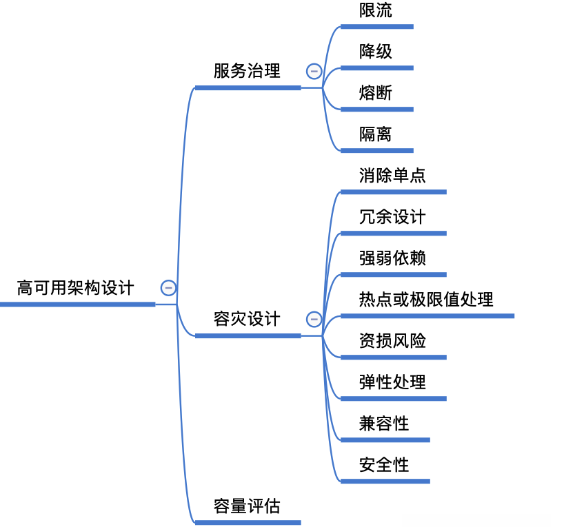 对于高可用设计来说,一般可分为两大块,分别是:服务治理和容灾设计。