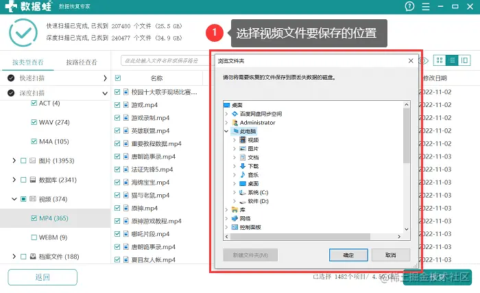 步骤3: 最后,选择视频要保存的电脑位置或者其他的外接设备。只要不选择保存在软件扫描的位置就可以了。