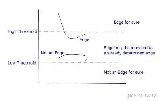 低阈值 = 选择一个非常低的值,任何梯度值低于该值的像素绝对不是边缘。