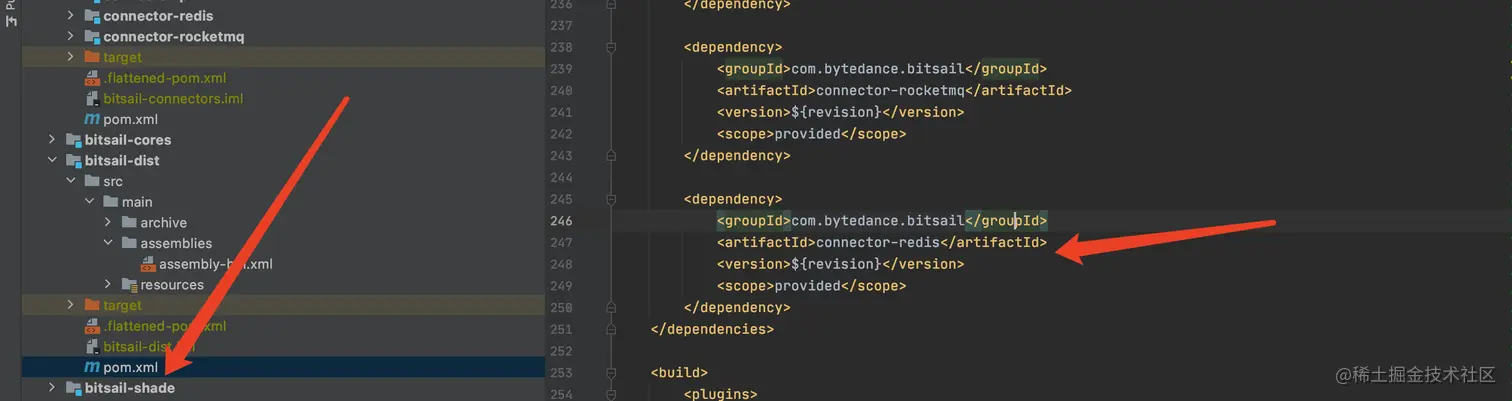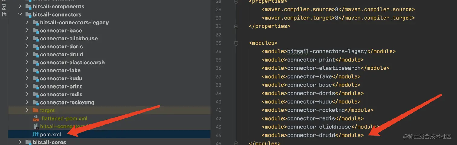 bitsail/bitsail-connectors/pom.xml模块中注册自己的Connector,同时在bitsail/bitsail-dist/pom.xml增加自己的Connector模块,同时为你的连接器注册配置文件,来使得框架可以在运行时动态发现它。