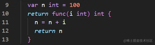 返回的是一个匿名函数,但是这个匿名函数引用到了函数外的变量 n ,因此这个匿名函数就和 n 形成一个整体,构成闭包